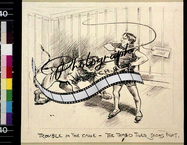 Trouble in the Cage,Tamed Tiger Show,Tammany Tiger,American Cartoon,1898-1915