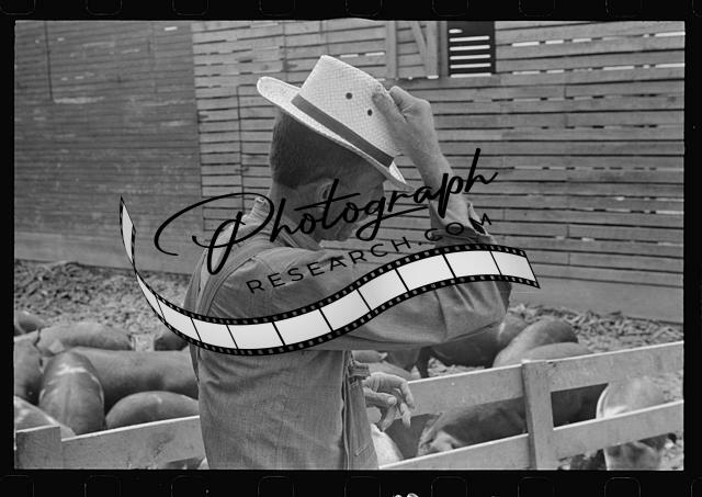General caption for this series of images: Virgil Thaxton rents a 120-acre farm from Mr. Brand. This is the fourth farm he has rented within the last eight years. At each change he hopes to make enough to have a nice home for his family. Within the last eight years hogs have not brought more than ten cents on the foot. Wheat brought sixty cents per bushel this year. Mr. Thaxton is constantly agitated. He is conscious of the rundown condition of his farm. He would like to have it look as neat as Mr. Brand's own farm. In his agitation he is constantly pulling up a weed here, a weed there, but must then break off to tend the stock. Mr. Thaxton votes for Roosevelt; had voted for Martin Davey. He will not vote for Mr. Davey this year; he will vote for Mr. Roosevelt. Mr. Thaxton loves the land. Two years ago he was offered a small political job in the city. Mr. Thaxton: 'But when I thought of the young wheat coming up and that pretty green on top of the hill and it is pretty I just wouldn't think of it. And then the children... I hear wheat is bringing sixty cents now. If it only brought a few cents more I could afford to fix up this place. As it is, what with giving Mr. Brand his half, we can just get by.' Mr. Brand is a retired congressman, owns 4500 acres of Ohio farmland.