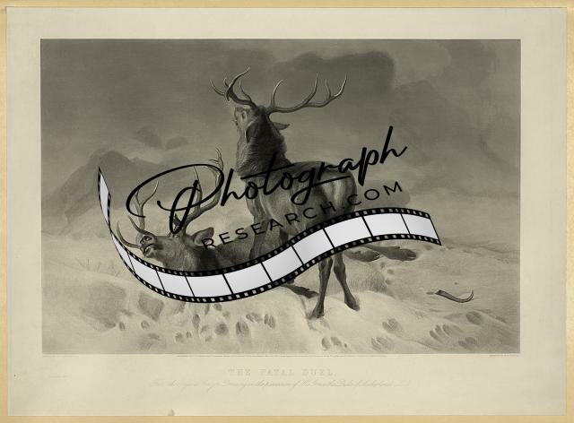 The Fatel Duel,c1879,Elk,Snow,Animals,Fighting