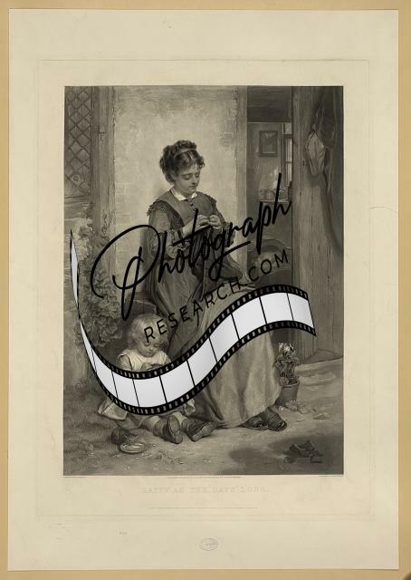 Happy as the Day's Long,c1876,Woman Sewing,Child,Domestic Life