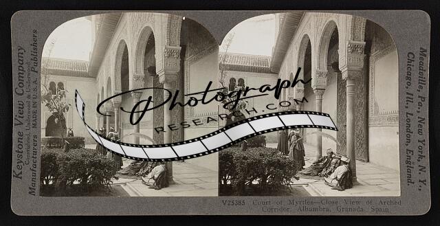 Court of Myrtles - close view of arched corridor, Alhambra, Granada, Spain