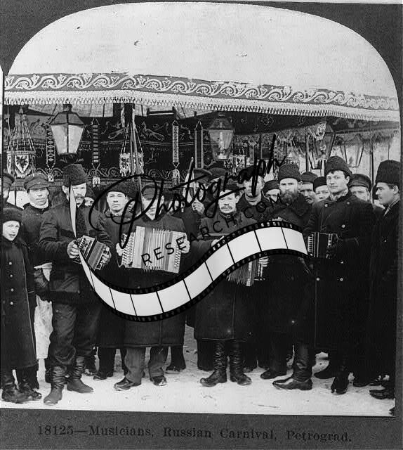 Musicians,Russian Carnival,Petrograd,Russia,c1919,Men with Accordians,Streetlamp