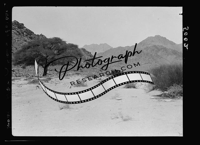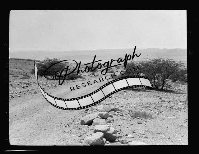 Title: The Araba (Southern end of the great Jordan rift). Negeb el-Shurk. Akaba (Elath). Gulf of Akaba and el-Kuntilla. Araba. Traffic sign near Ibn Saoud boundary, indicating direction to Wadi Rum, Medawera, Ma'an & Akaba