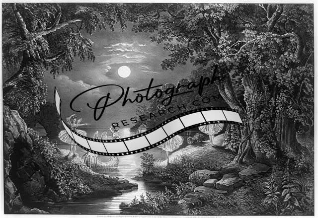 The Fairie's home,Magic,Moonlight,Wooded Area,River,Night Time,c1868