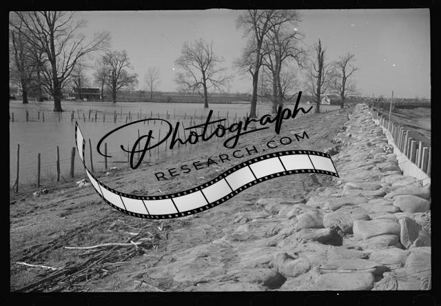 Title: The Bessis Levee, along a subsidiary of the Mississippi River. The levee has been augmented with sand bags during the 1937 flood