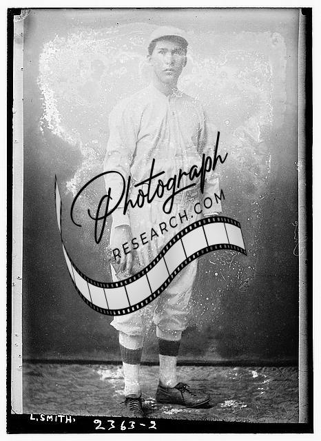 L. Smith,baseball,uniform,holding baseball mitt,1912