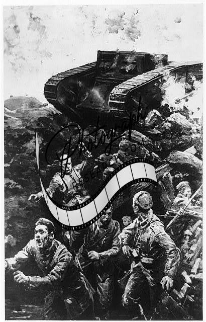 [[A British "tank" approaching a German trench]]