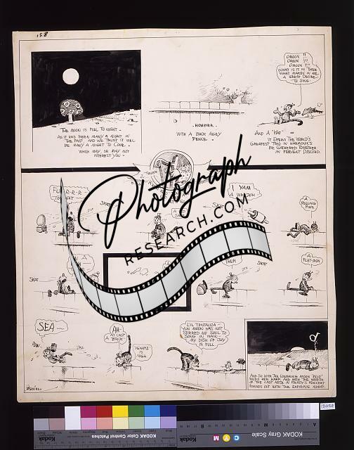 Krazy Kat. The moon is full to-night,1917,Singing,Moon,Stars,Fence,1917