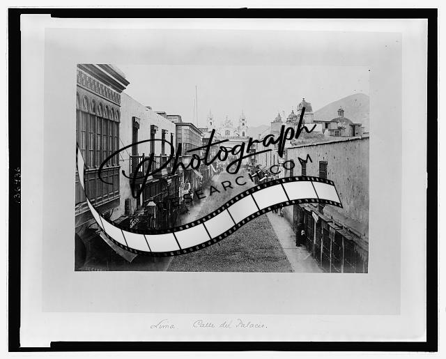 The Cathedral,Lima,Peru,1868,statuary garden,street