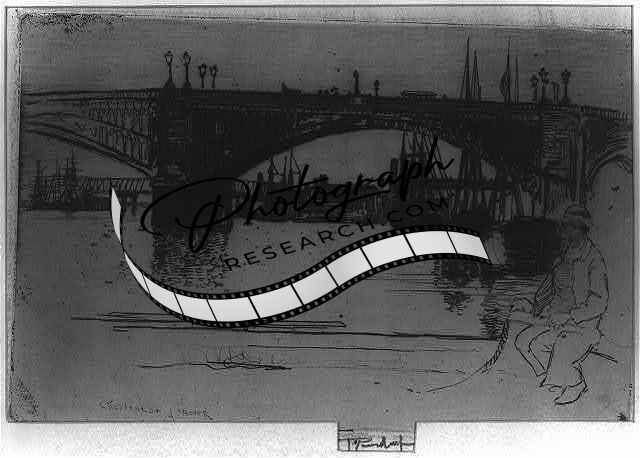 Chestnut Street,Bridge,Water,Boats,Joseph Pennell,1884