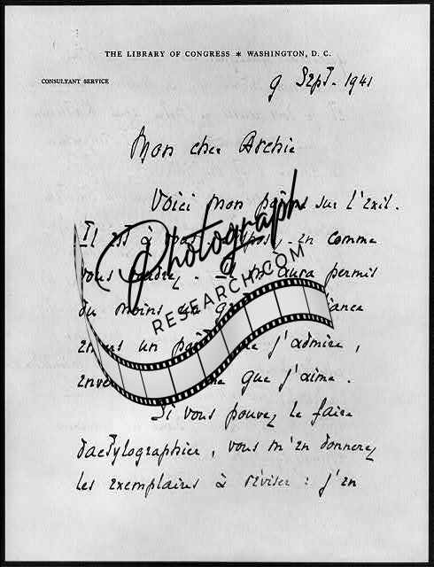 Letter,French from Alexis St.-Leger Leger to Archibald MacLeish,September 9,1941