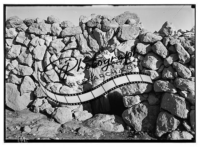 Sheep fold cave,Entrance,with shepherd,Middle East,American Colony Photo Dept
