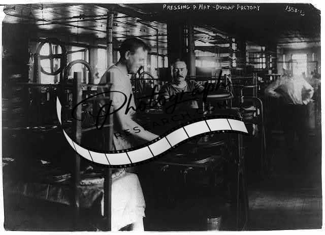 Pressing a Hat,Dunlap Factory,c1920,workmen using hat pressing machine,Bain
