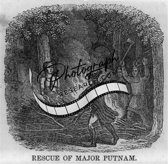 Rescue of Major Israel? Putnam tied to tree,man rescuing him,Indians