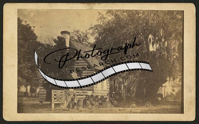 Summary: Photograph shows African Americans (freed slaves?) celebrating in a plantation house, includes couples dancing and children playing.