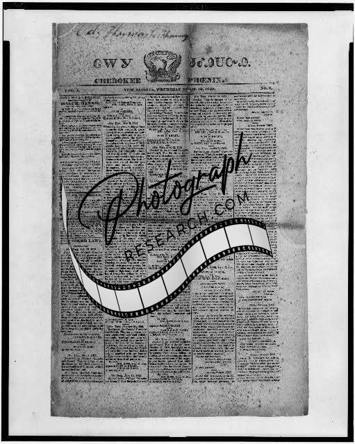 Cherokee Phoenix,New Echota,Georgia,GA,April 10,1828,Indians of North America