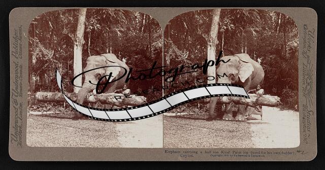 Elephant carrying a half ton Kitul palm log (used for his own folder), Ceylon
