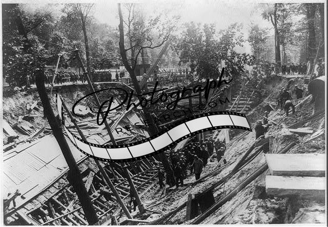 [[Clearing away debris of the cave-in of the Brandenburg gate of the subway in th