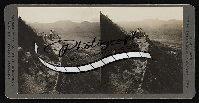 [[People on a cliff overlooking the railroad cut, Culebra, Panama]]
