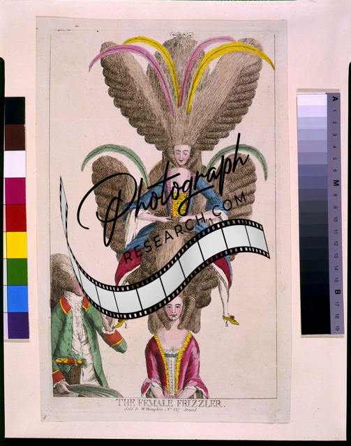 The Female frizzler,British Cartoon,Huge Hairdo,Women,Great Britain,1770-1800