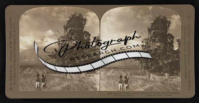 Ruins of Daragh church and distant Mayon, Southern Luzon, Phillippine Islands