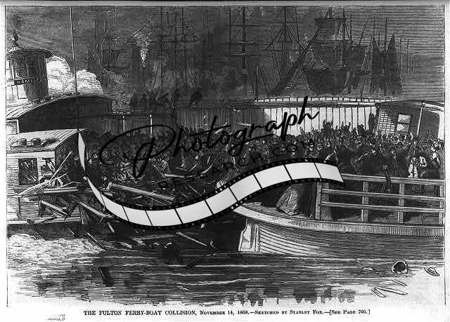 The Fulton Ferry boat collision,November 14,1868,Harper's Weekly,crash,people