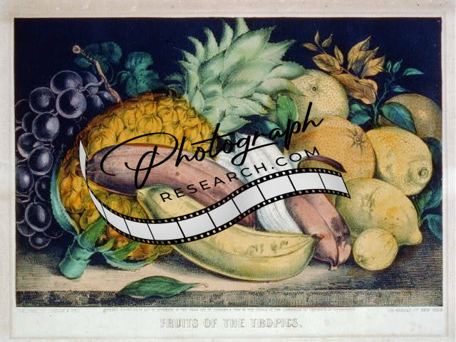 Photo of Fruits of the tropics,c1871,Currier & Ives,bananas,pinapple,grapes