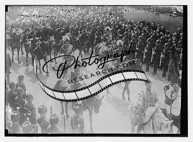 Funeral of King Edward. Kaiser,Duke of Connaught,King George,May 1910,horses