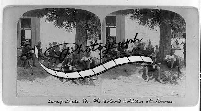 Camp Alger,Falls Church,Virginia,VA,Colored soldiers at dinner,c1898,Photo,food
