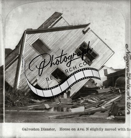 Disaster,Galveston,Texas,TX,House on Avenue,Moved w/ Flood,Hurricane,Storm,c1900