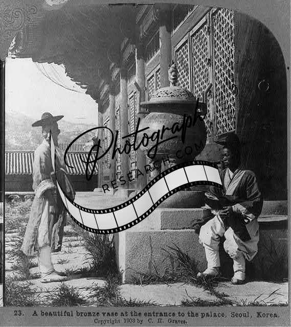 A beautiful bronze vase at the entrance to the palace,Seoul,Korea: c1903.