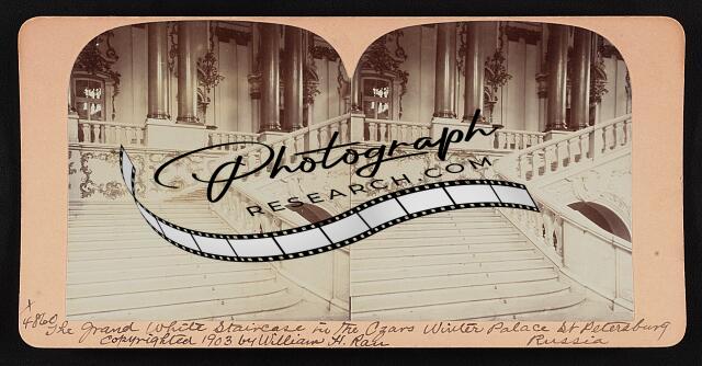 The grand white staircase in the Czar's Winter Palace, St. Petersburg, Russia