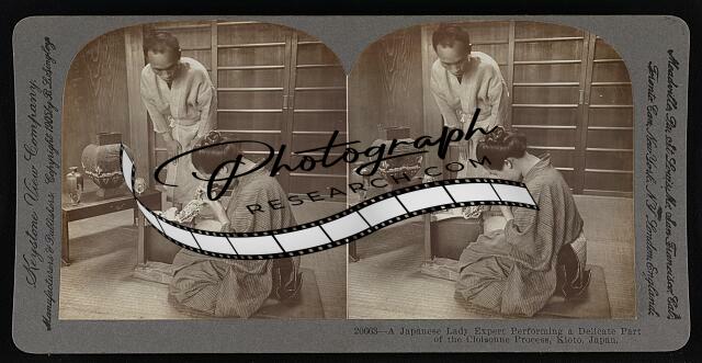A Japanese lady expert performing of the cloisonne process,Kioto,Japan