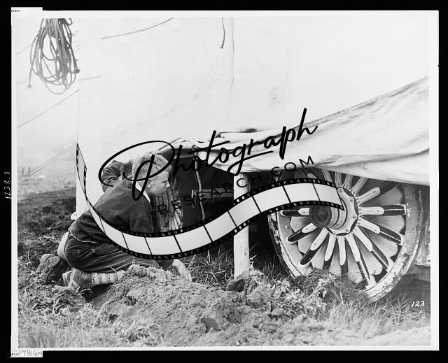 Young America catches glimpse of Menagerie,Boy looking under tent,Circus Wagon