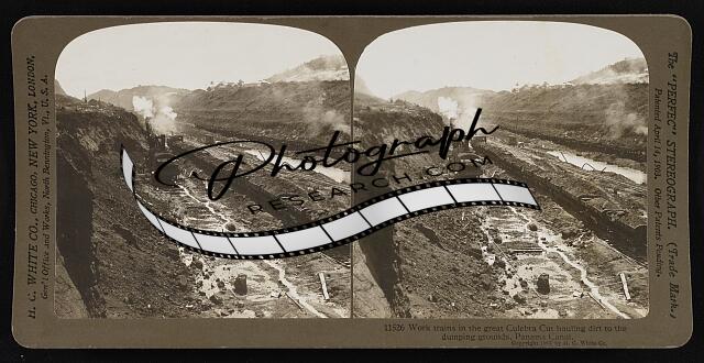 Work trains in the great Culebra Cut hauling dirt to the dumping grounds, Panama