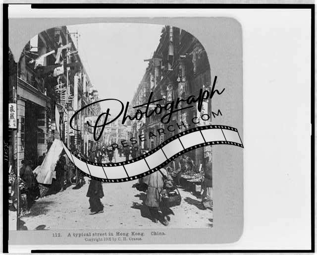 A typical street in Hong Kong,China,People,Store Fronts,City Life,c1902,Graves