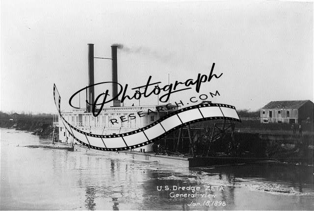 Mississippi River View,U.S. Dredge Zeta,Steamboat,January 18,1898