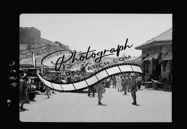 Title: Citadel area at Jaffa Gate under military patrol during court rehearsal on Aug 22, '38 of bomb incident on July 8