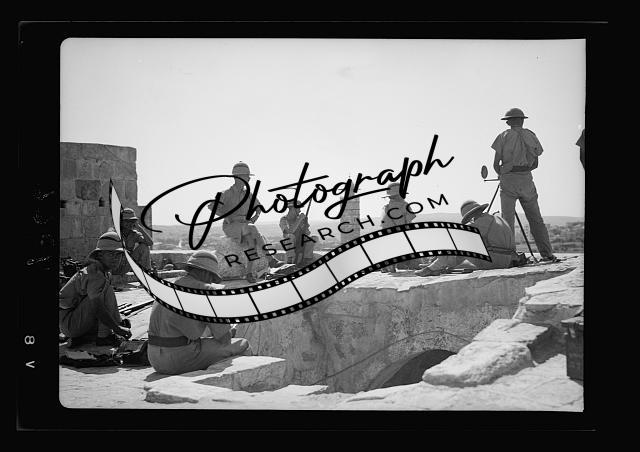 War-like scene on roof of Tower of David,mounted machine guns,Jerusalem,Israel,1
