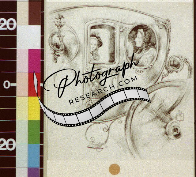 Young girl gazing at older woman in passing carriage,George Wharton Edwards