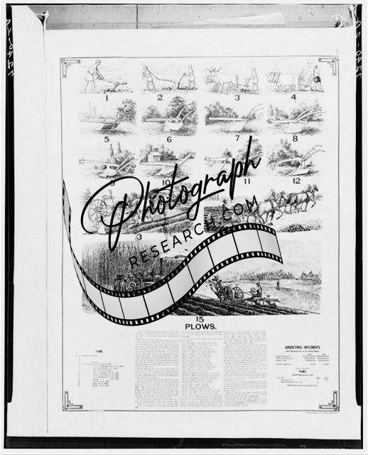 Part of a series of photographic copies of lithographs showing earlier methods and modern patents for a variety of agricultural and industrial implements or activities.