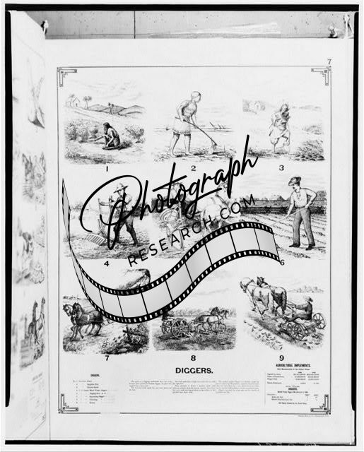 Part of a series of photographic copies of lithographs showing earlier methods and modern patents for a variety of agricultural and industrial implements or activities.