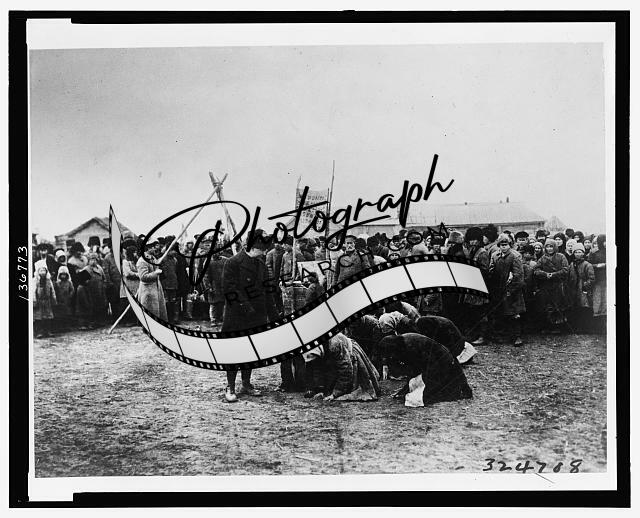 Hungry Russian women kneel before American Relief Administration officials,1922