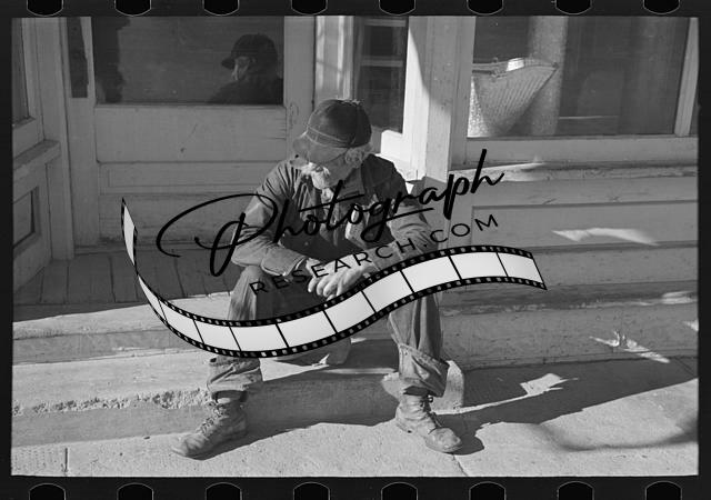 Arnegard,McKenzie County,North Dakota,ND,Old man sitting on a store step,FSA