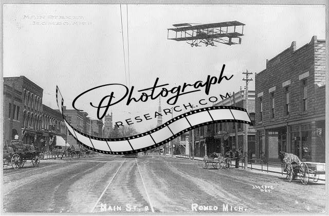 Main Street,showing trolley & airplane,Romeo,Macomb County,Michigan,MI,c1905