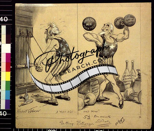 Getting stronger,Uncle Sam,Weight Lifting,Strong Man,c1916,Herbert Johnson