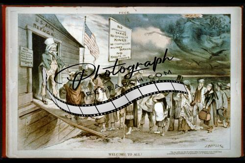 Welcome to all!,Uncle Sam,US Ark of Refuge,immigrants,War,1880,photo,US Flag