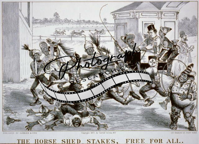 The horse shed stakes,free for all,Currier & Ives Photo,c1877,Darktown Comics?