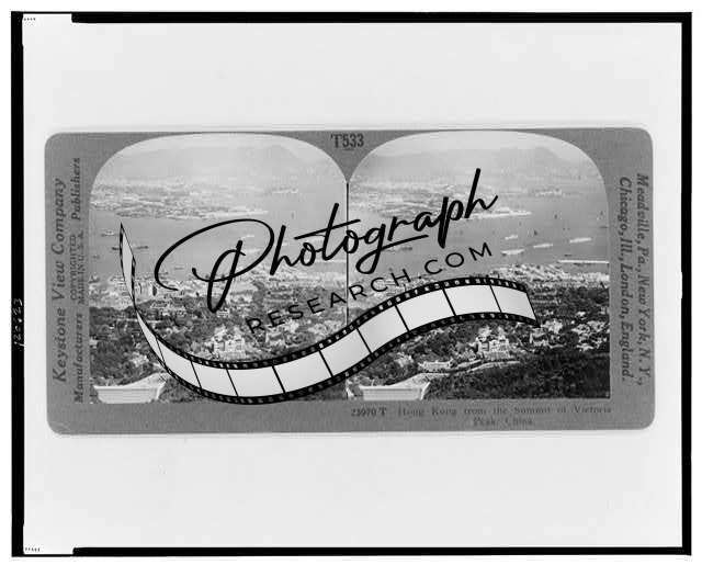 Photo of Stereograph,Hong Kong from Summit of Victoria Peak,China,c1930