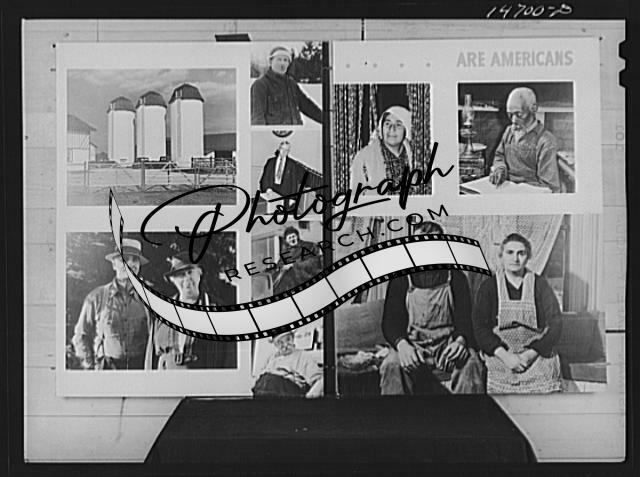 Title: A panel from an exhibit 'In the Image of America,' designed by the Farm Security Administration as part of the Science and Industry Exhibit held in Rockefeller Center, New York City, in 1941
